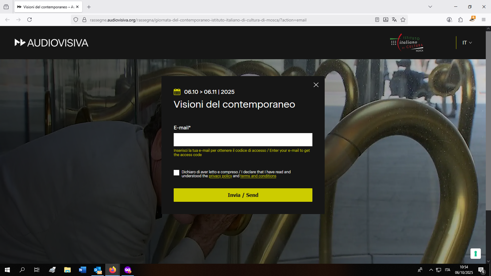 Документальные фильмы будут доступны для просмотра на итальянском языке с английскими субтитрами с 6 октября по 6 ноября 2025. Для доступа к ретроспективе необходимо зарегистрироваться, следуя инструкции ниже на этой странице.